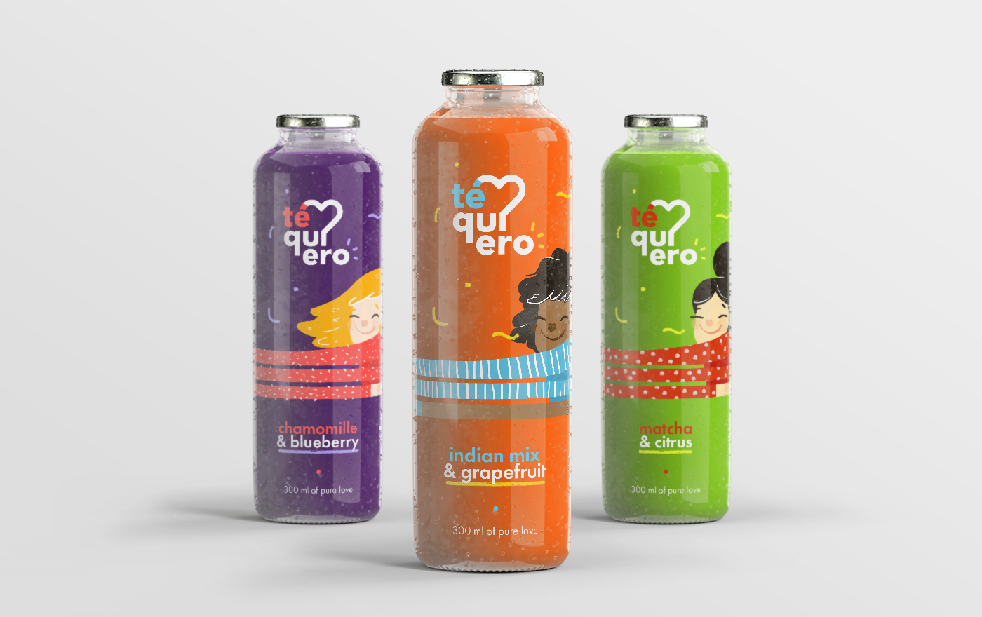 O conceito criativo da marca se desenvolve ao redor do abraço e do sentimento nele presente. Além de transmitir uma sensação de ternura e carinho, por conta de suas expressões e da forma como envolvem a garrafa, as personagens foram desenvolvidas a partir dos sabores das bebidas, criando uma relação direta entre eles e suas etnias. O nome vem de um trocadilho que criamos,em espanhol, para trazer a ideia de que o produto é tão bom quanto estar apaixonado. “Té” significa “Chá” e “Te quiero” é o mesmo que “Te amo”.