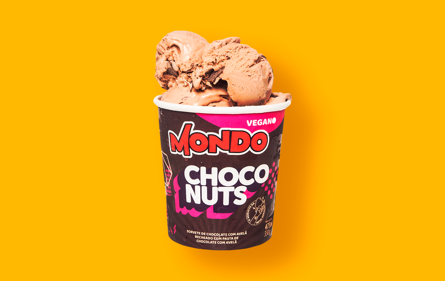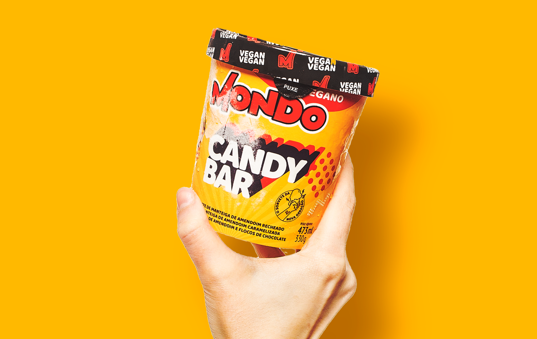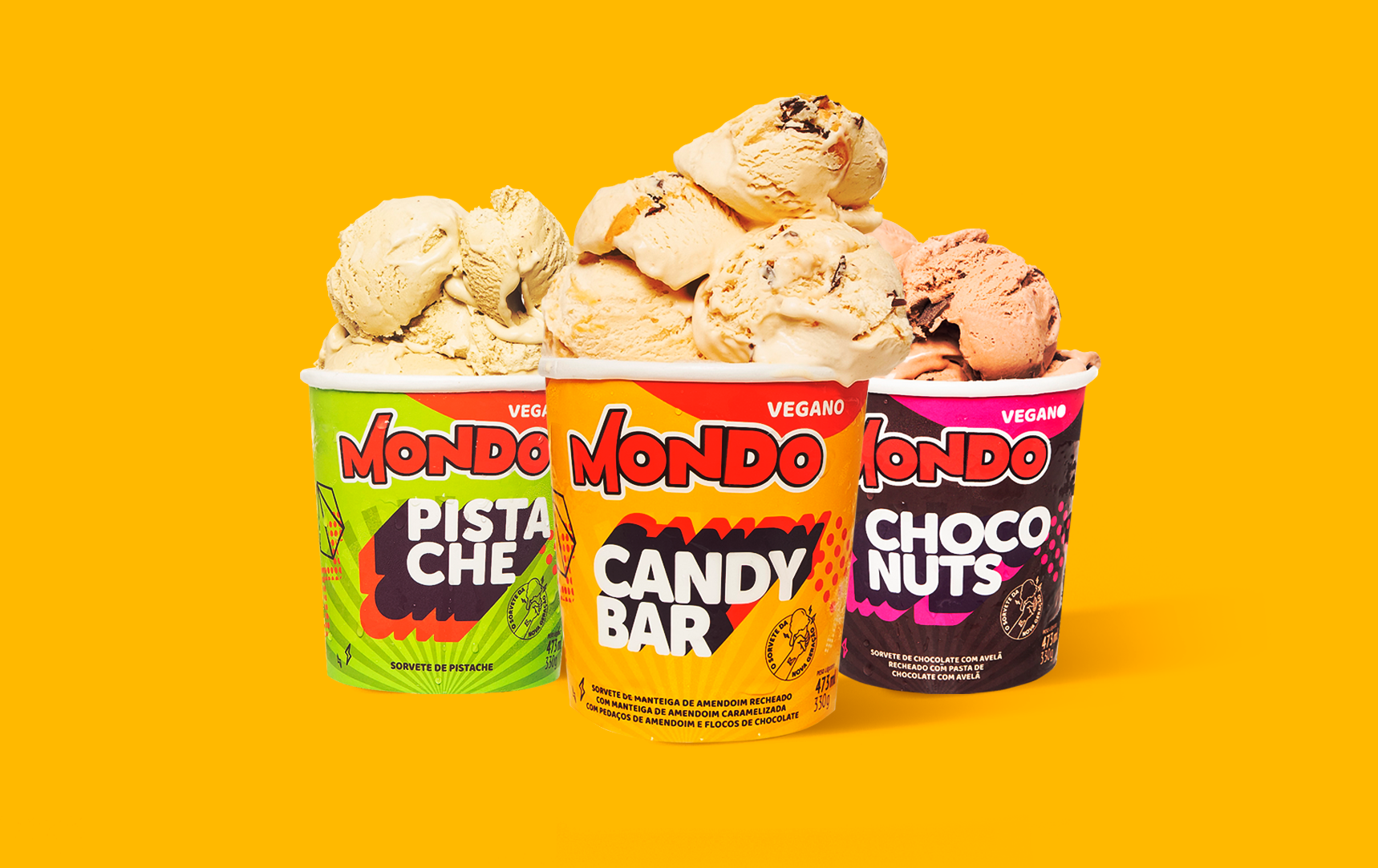 Redesign de marca e criação de identidade visual para linha de sorvetes veganos inspirada na comunicação cheia de energia, predominante nos anos 90.
