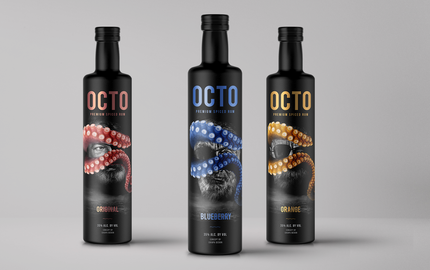 Projeto Conceito de Embalagem e Identidade Visual para linha de RUM, que é conhecida como a bebida preferida dos piratas. Depois de descobrir a origem da alegria dos marujos, o Polvo ataca o barco para roubar algumas garrafas e fazer a festa em alto mar.