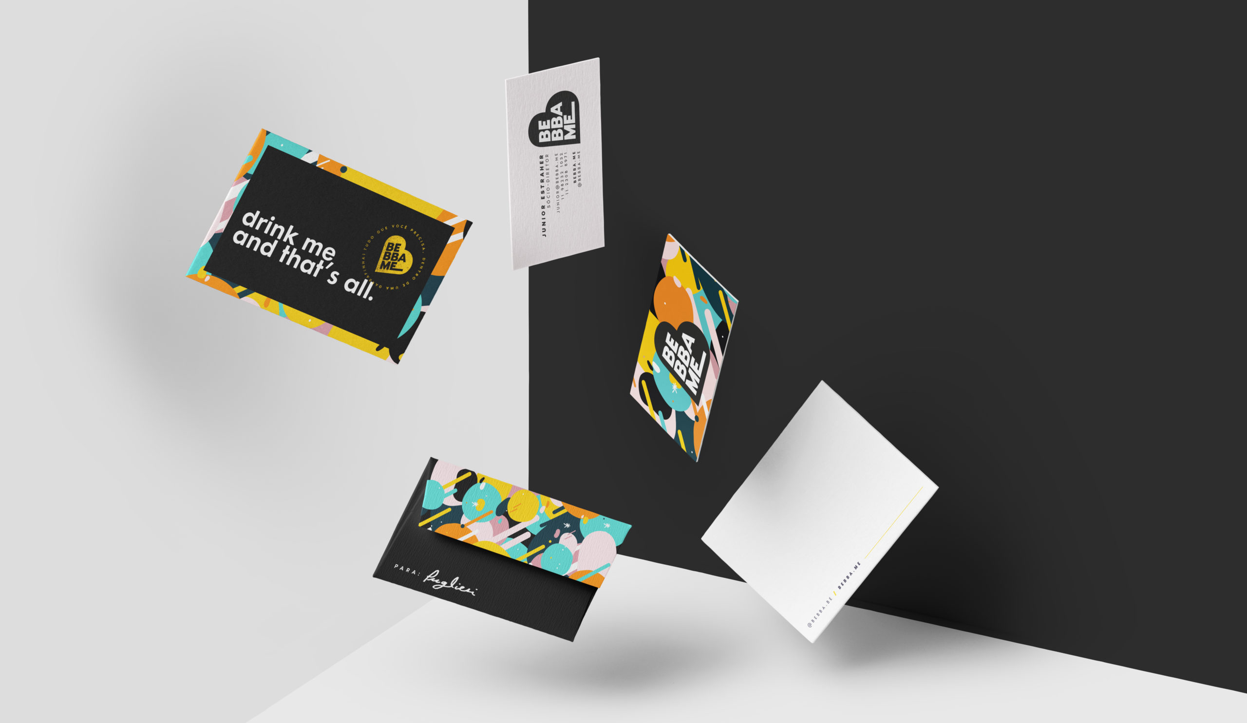 Novo conceito em bebidas, que chega cheio de personalidade. Suas cores vibrantes combinadas com o pattern orgânico transmitem a energia e plenitude que a bebida proporciona. O logo é presente e ganha ainda mais força por ser aplicado dentro de seu símbolo, o “B” em formato de coração.